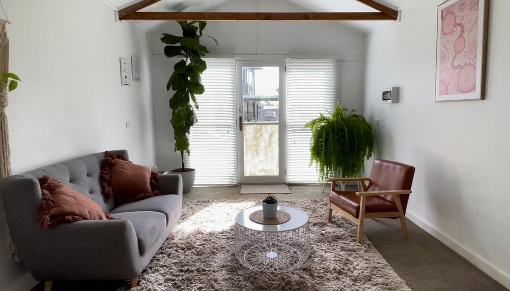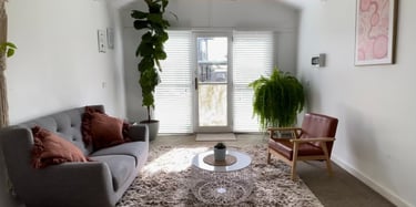 The counselling room offers a professional space that is also warm and inviting. Situated in a separate building at the rear of a residential property, the counselling room ensures complete privacy during each session. You'll enter into a room that is set amongst lots of greenery to create a sense of calm.